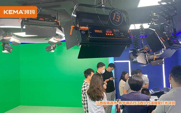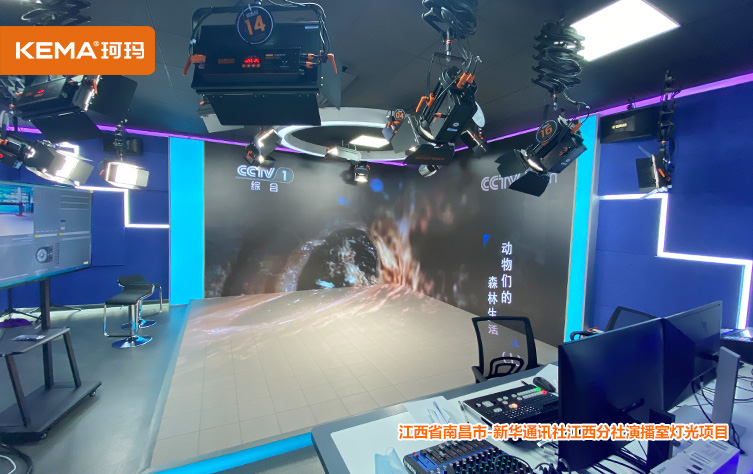 新华通讯社江西分社全媒报道平台建设项目是一个沉浸式演播室,旨在建设现代化的全媒报道指挥平台,在该平台上实现报道指挥、资源调度等相关业务。原来使用的是三基色冷光灯,不能调光,色温低,而且使用了好多年,灯具衰减厉害。本次找武汉珂玛提供灯光解决方案,并提供灯光设计、调试服务,目的是为了满足现代4K超高清电视节目录制要求,灯光照度和色温均满足广电部演播室灯光推荐标准。