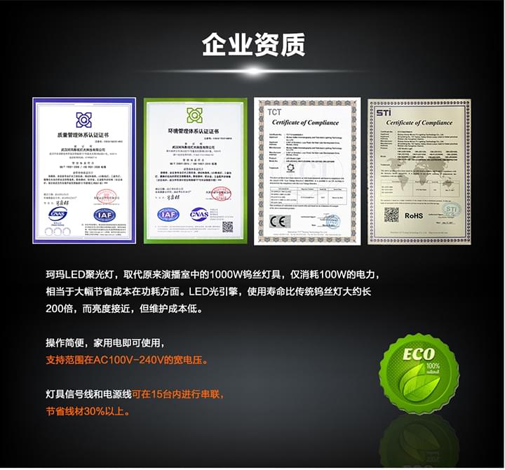 武汉珂玛影视灯光科技有限公司2004年创建于武汉,是一家高新技术企业,并通过ISO9001认证,总部设在依山傍水,风光秀丽的“中国光谷”,位于武汉市东湖高新区,是首批国家高 新区,2016年获批中国(湖北)自由贸易试验区武汉片区,是全球最大的光电子,光通信研发生产基地,是中央电视台,湖北电视台,湖南电视台,武汉电视台,长沙电视台,武汉大学,华中师范大学等众多电视台演播室灯光采购供应商,珂玛是中国广电行业知名的中小型演播室灯光、会议室灯光生产制造商。