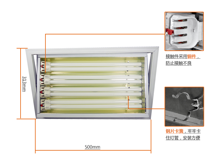■ 灯座和灯拖采用进口件,安全可靠。灯座采用快速锁紧装置,方便灯管拆卸,接口采用优质黄铜,具有导电性良好,防电火花、耐电弧高温、接触性良好的特点。