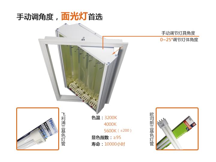 ■ 色温准:色彩还原率高,灯管显色指数达95-100,色温3200K/4000K/5600K(±200)。
