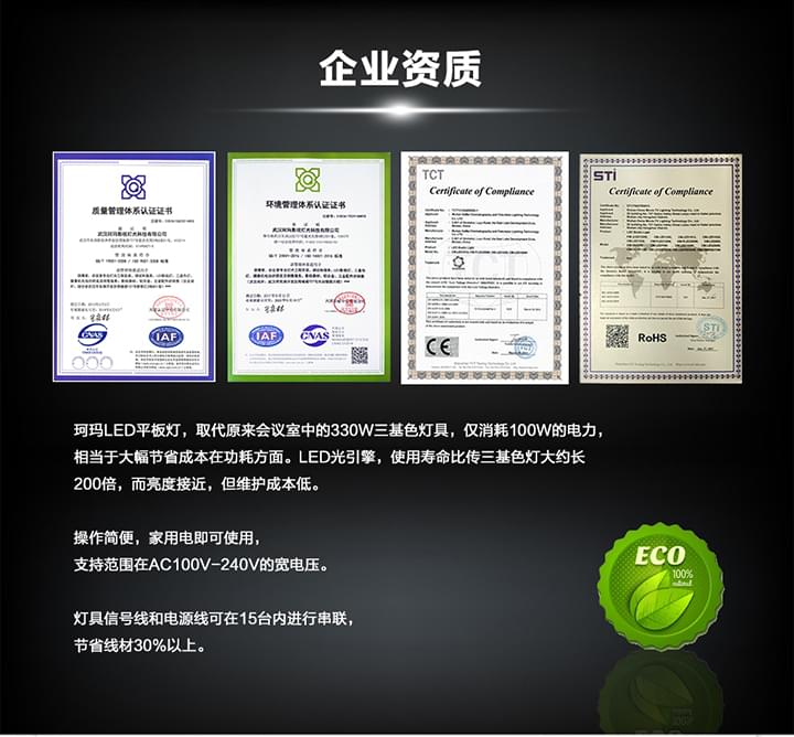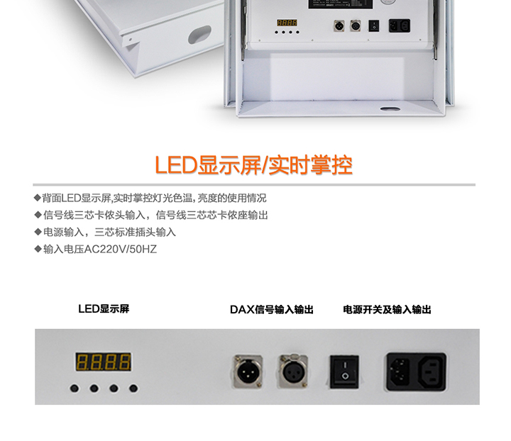 由600颗LED灯珠组合而成,发光效率高,可形成大面积发光矩阵,显色指数高,色还原好,配有高透光率亚克力柔光板,光输出柔和、均匀,无有害红外线,紫外线,无眩光,无闪烁,不刺眼。自然散热,环保节能,超长寿命5万小时(每天使用10小时,可以用13年),运行费用低,比传统的三基色冷光灯节能50%,节约线材等优点。