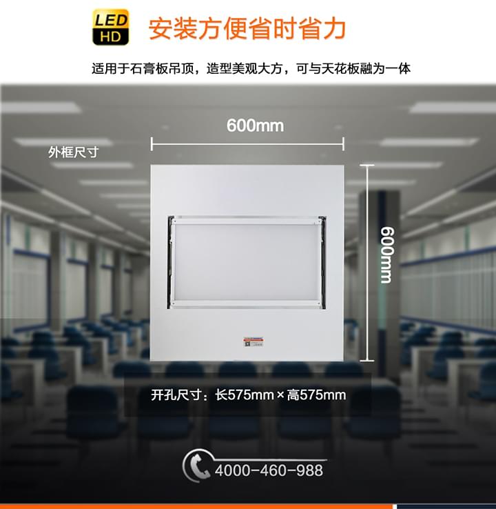 灯体尺寸:600×600×70mm(外框),575×575×70mm(开孔),460×270mm(发光面积)