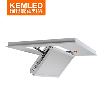正方形LED内嵌式半边轴会议室灯具CM-LED1200(DMX)是武汉珂玛的一款专为视频会议室设计的一款面光灯和轮廓光,角度可调,亮度可调,发光均匀,照度高,亮而不刺眼,显色指数高,拍摄画面清晰,代替了传统的三基色冷光灯,采用先进的设计和加工工艺,外表采用高强度铝型材定制而成,配合现代感的流行线外型设计,使其外观整齐亮丽。设有LED显示屏控制DMX编码及灯体功能选择,内置抗干扰电路,其结构完善紧密,内置电子调节灯泡亮度,可随时调节灯泡亮度。适用于视频会议室、、电教室、拍课教室、学术报告厅、多功能厅、新闻发布会现场等需要专业拍摄的场合。